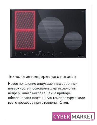 индукционная на 4 конфорки, cтеклокерамика, мощность: 7200 Вт, автоматика закипания, независимая установка, размеры (ШхГ): 59x52 см