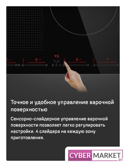 индукционная на 4 конфорки, cтеклокерамика, мощность: 7400 Вт, независимая установка, размеры (ШхГ): 59.2x52.2 см
