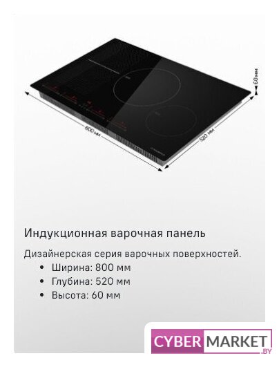 индукционная на 4 конфорки, cтеклокерамика, мощность: 6900 Вт, независимая установка, размеры (ШхГ): 59.2x52.2 см