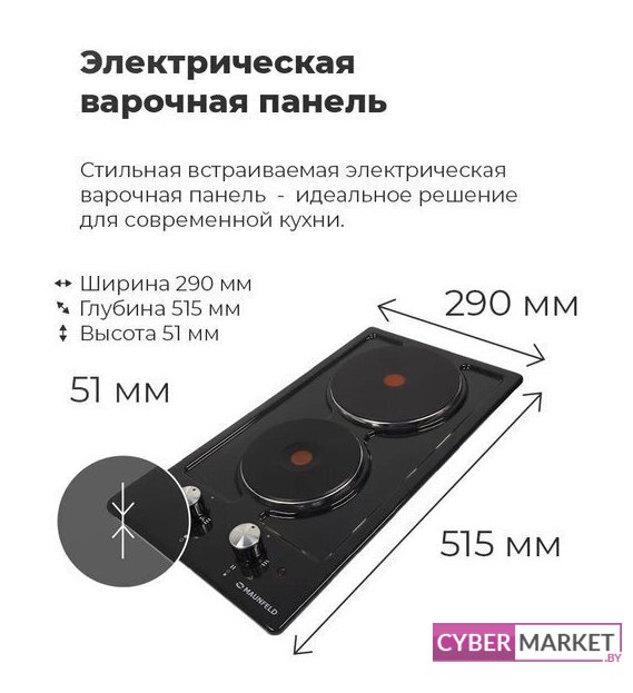 | Подробная информация о конфорках | Мощность конфорок, Вт.: 1500, 1500 |