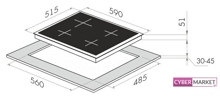 | Подробная информация о конфорках | Мощность конфорок, Вт.: 1500, 1500, 1500, 1500 |