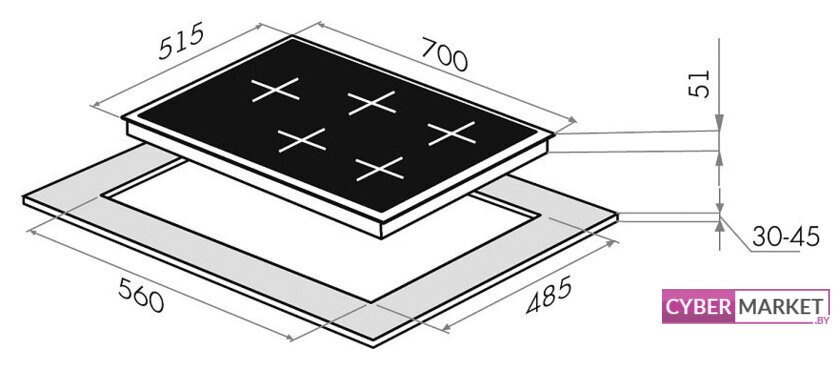 газовая на 4 конфорки, закаленное стекло, мощность: 8500 Вт, автоматический электроподжиг, газ-контроль, независимая установка, размеры (ШхГ): 59.1x51.1 см
