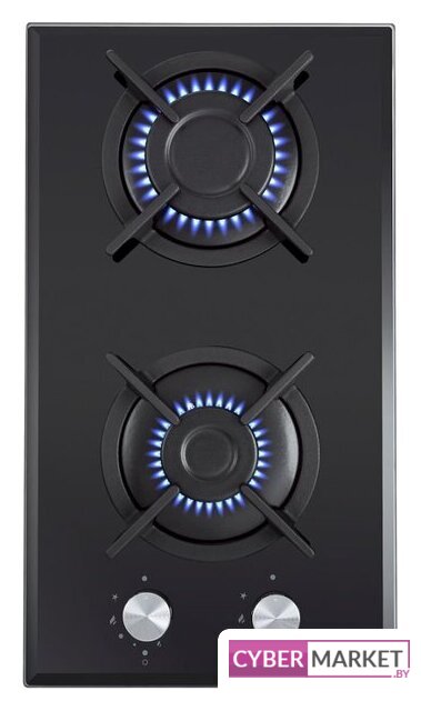 газовая на 2 конфорки, закаленное стекло, мощность: 4300 Вт, автоматический электроподжиг, газ-контроль, решетки: чугун, независимая установка, размеры (ШхГ): 29x51.5 см