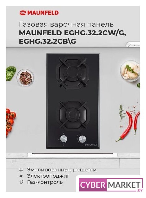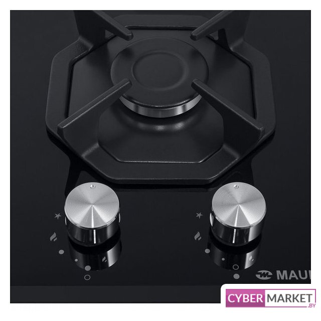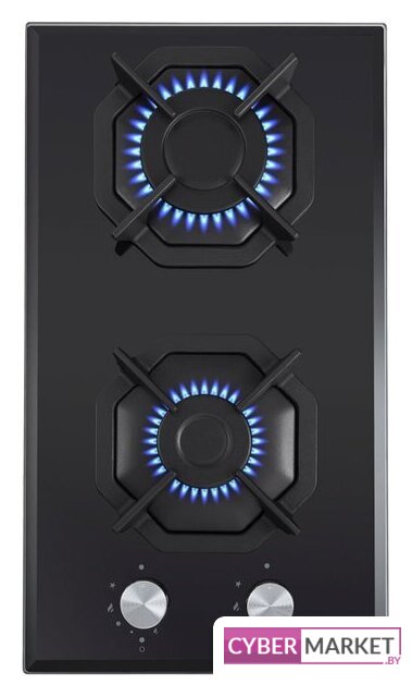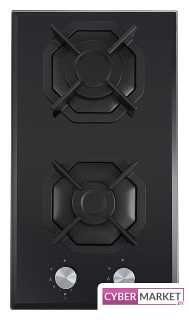 газовая на 2 конфорки, закаленное стекло, мощность: 4300 Вт, автоматический электроподжиг, газ-контроль, решетки: чугун, независимая установка