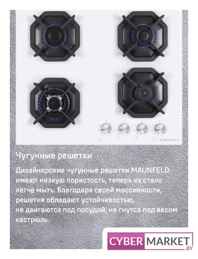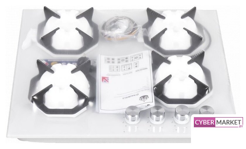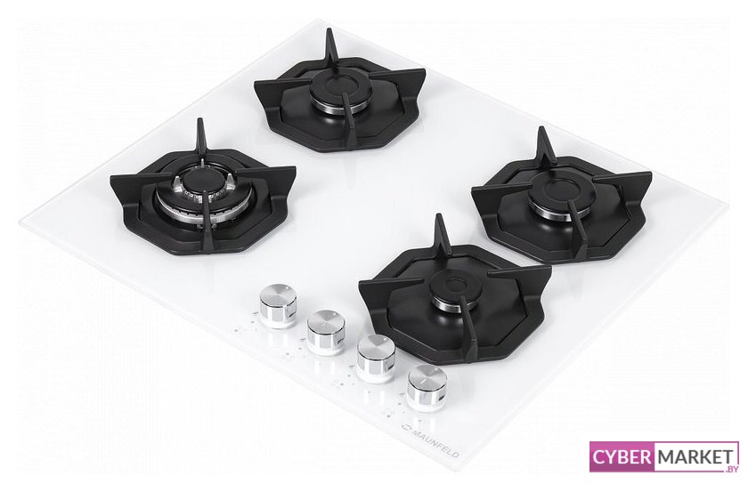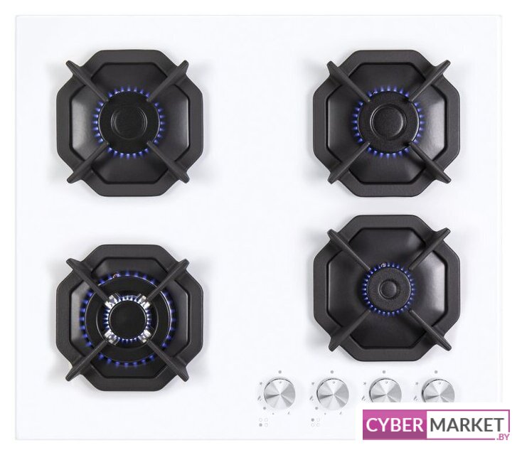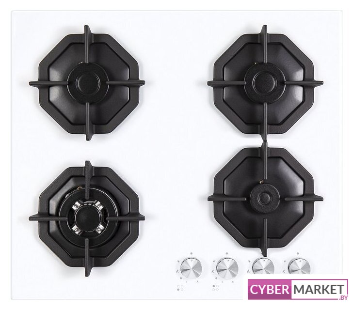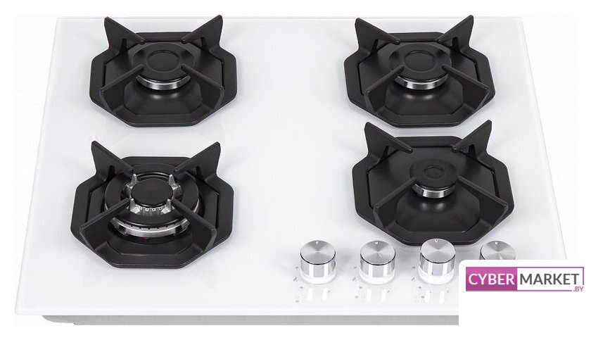 газовая на 4 конфорки, закаленное стекло, мощность: 7500 Вт, автоматический электроподжиг, газ-контроль, решетки: чугун, независимая установка