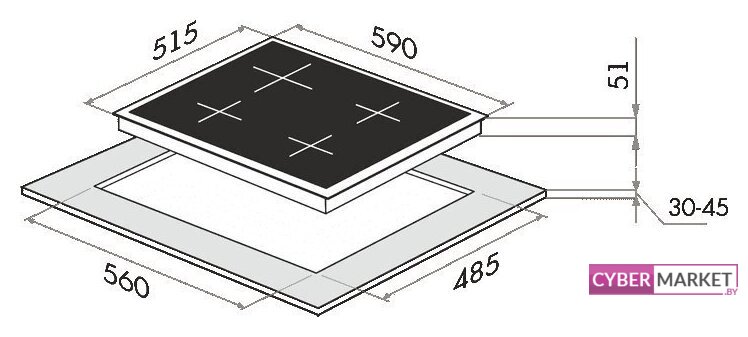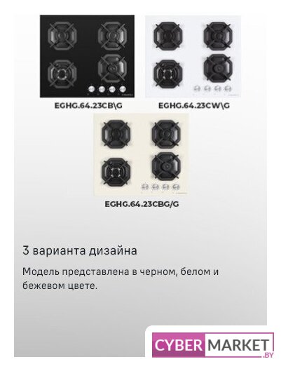 | Подробная информация о конфорках | 4 конфорки мощностью: 3000, 1700, 1700, 1000 Вт |