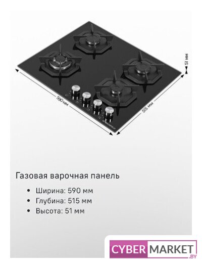 газовая на 4 конфорки, закаленное стекло, мощность: 7800 Вт, автоматический электроподжиг, газ-контроль, решетки: чугун, независимая установка, размеры (ШхГ): 60x51 см