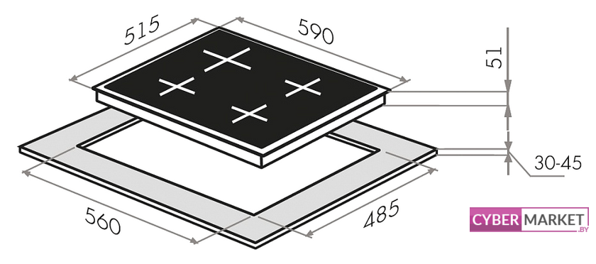 | Подробная информация о конфорках | 2600, 1700, 1700, 1000 Вт |