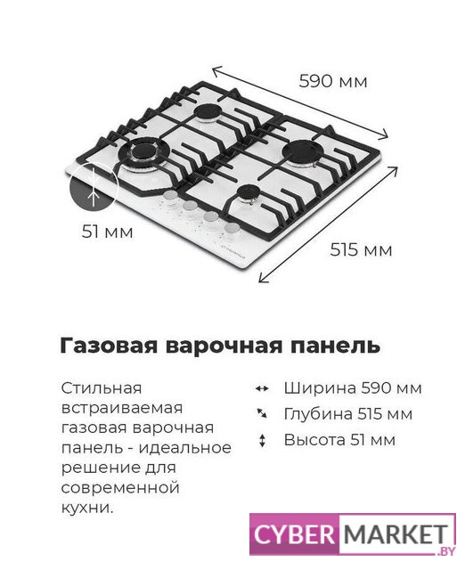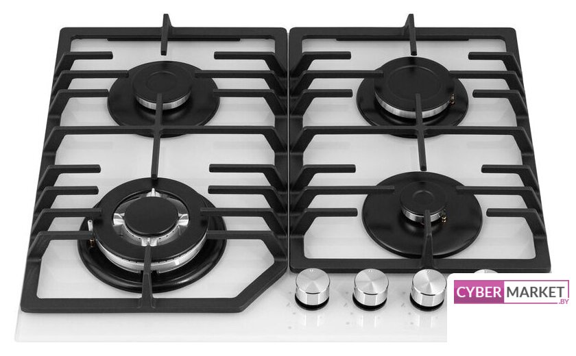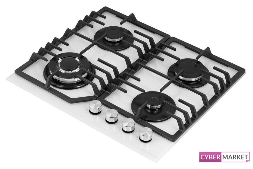 газовая на 4 конфорки, закаленное стекло, мощность: 9100 Вт, автоматический электроподжиг, газ-контроль, решетки: чугун, независимая установка, размеры (ШхГ): 59x51.5 см