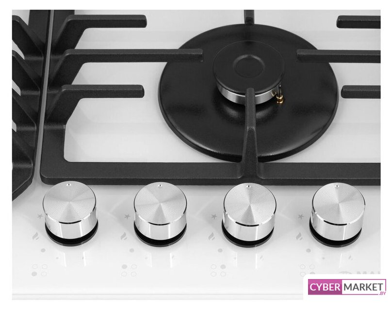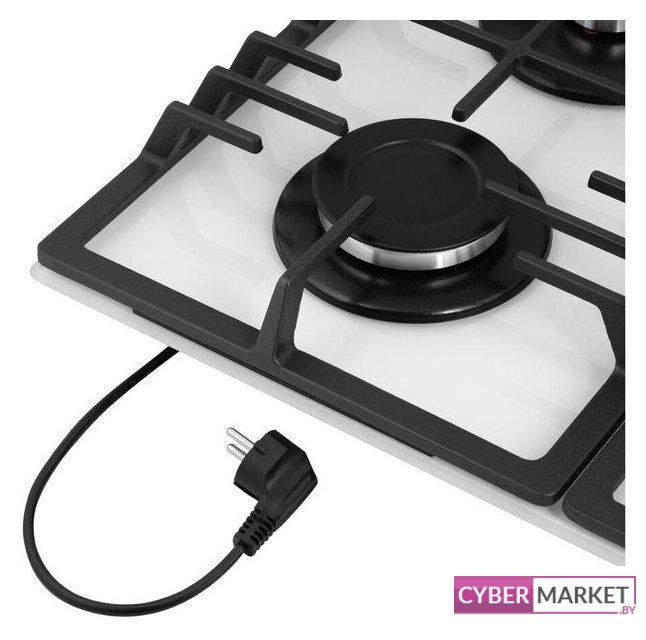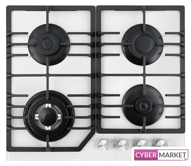 газовая на 4 конфорки, закаленное стекло, мощность: 7800 Вт, автоматический электроподжиг, газ-контроль, решетки: чугун, размеры (ШхГ): 60x51 см