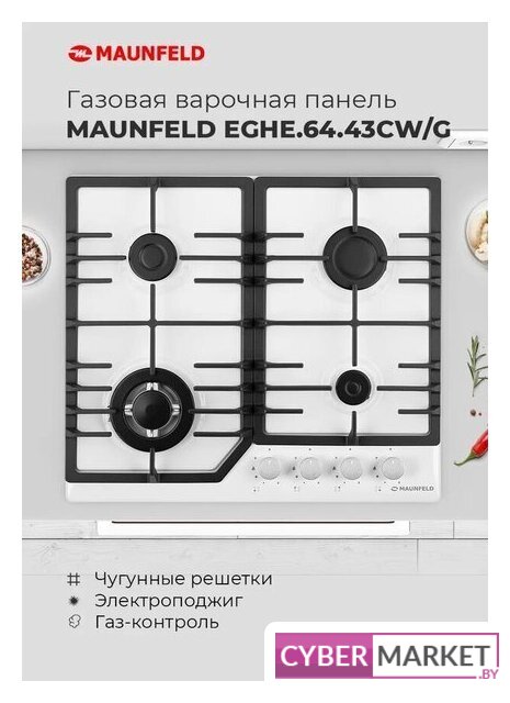газовая на 4 конфорки, закаленное стекло, мощность: 8000 Вт, автоматический электроподжиг, газ-контроль, решетки: чугун, независимая установка, размеры (ШхГ): 58x50 см