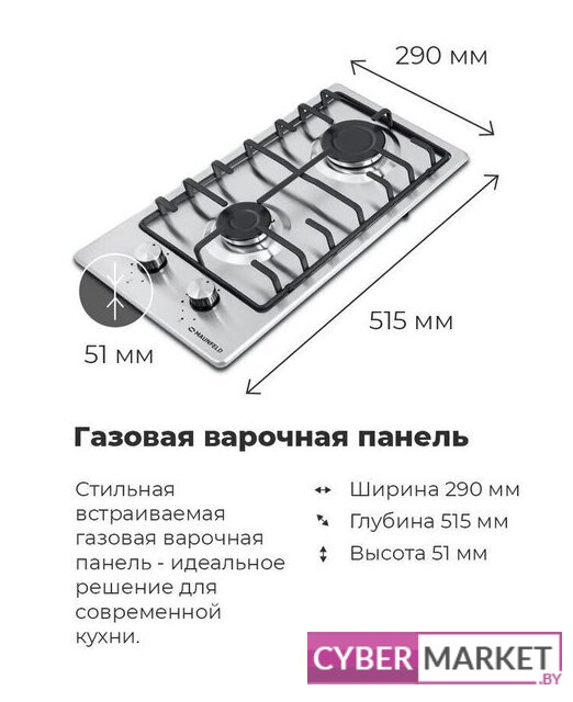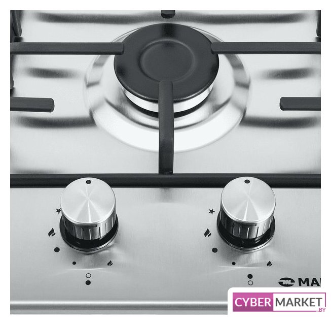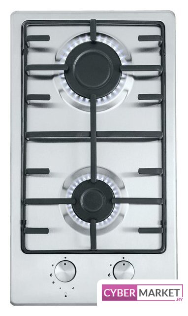 газовая на 2 конфорки, закаленное стекло, мощность: 4300 Вт, автоматический электроподжиг, газ-контроль, решетки: чугун, независимая установка, размеры (ШхГ): 30.5x52 см