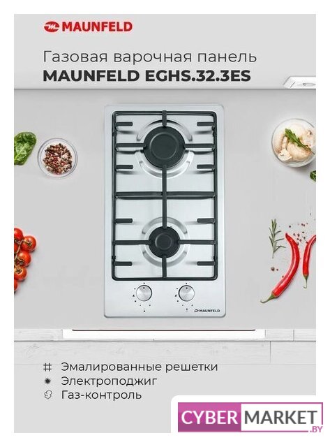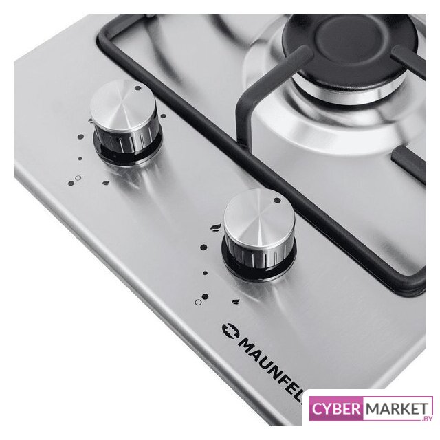 газовая на 2 конфорки, закаленное стекло, мощность: 3900 Вт, автоматический электроподжиг, газ-контроль, решетки: чугун, независимая установка, размеры (ШхГ): 30.6x52 см