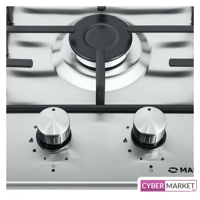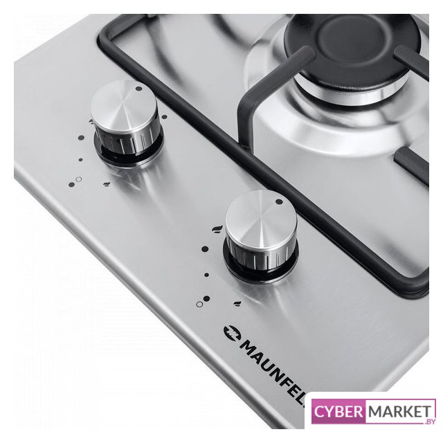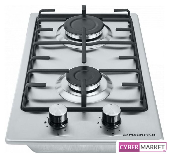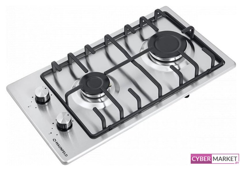 газовая на 2 конфорки, закаленное стекло, мощность: 3800 Вт, автоматический электроподжиг, газ-контроль, решетки: чугун, независимая установка, размеры (ШхГ): 32x52 см