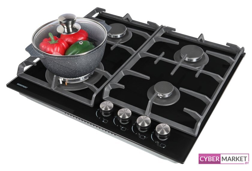 газовая на 2 конфорки, закаленное стекло, мощность: 4700 Вт, автоматический электроподжиг, газ-контроль, решетки: чугун, независимая установка, размеры (ШхГ): 29x51.5 см