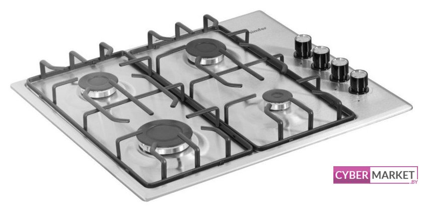 газовая на 2 конфорки, нержавеющая сталь, мощность: 4300 Вт, автоматический электроподжиг, решетки: эмалированная сталь, независимая установка