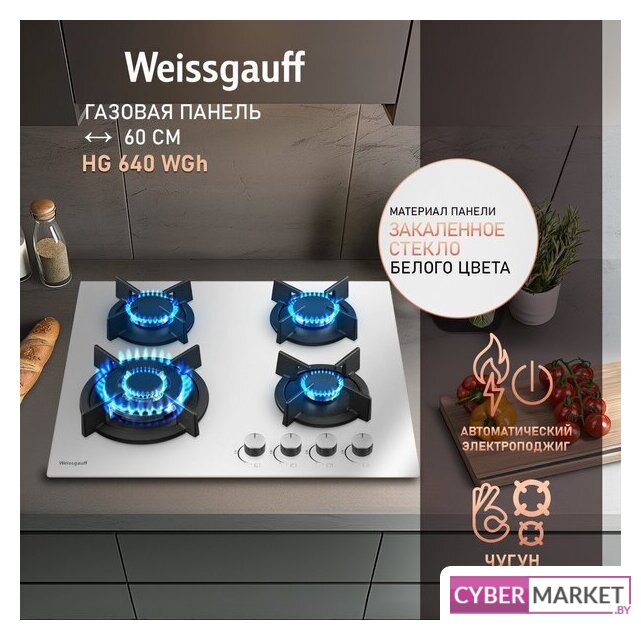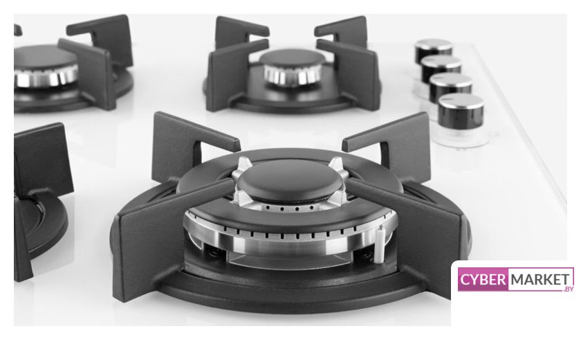 газовая на 2 конфорки, закаленное стекло, мощность: 4300 Вт, автоматический электроподжиг, газ-контроль, решетки: чугун, независимая установка