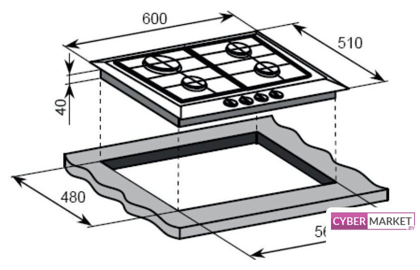 газовая на 4 конфорки, эмалированная сталь, мощность: 7200 Вт, автоматический электроподжиг, решетки: чугун, независимая установка, размеры (ШхГ): 58x51.5 см