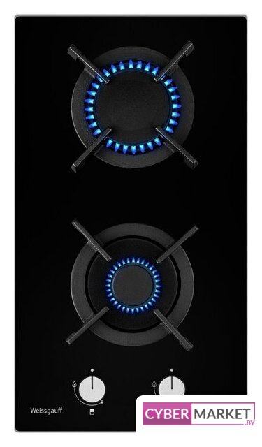 газовая на 2 конфорки, закаленное стекло, мощность: 4300 Вт, автоматический электроподжиг, газ-контроль, решетки: чугун, независимая установка