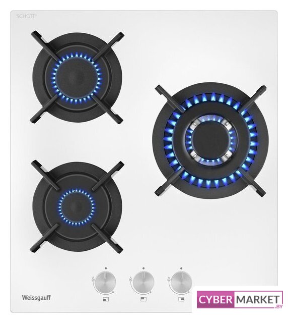 газовая на 3 конфорки, закаленное стекло, мощность: 5700 Вт, автоматический электроподжиг, газ-контроль, решетки: чугун, независимая установка, размеры (ШхГ): 55x41 см