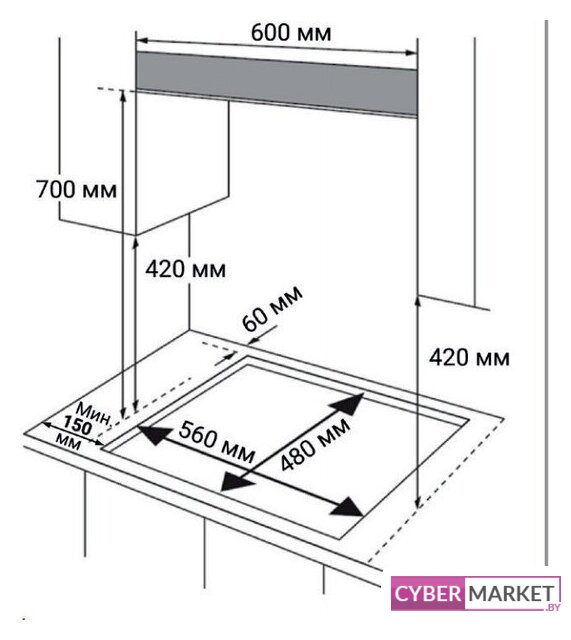 газовая на 4 конфорки, закаленное стекло, автоматический электроподжиг, газ-контроль, решетки: чугун, независимая установка, размеры (ШхГ): 60x52.5 см