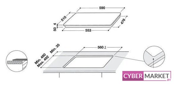 индукционная на 4 конфорки, cтеклокерамика, мощность: 7350 Вт, независимая установка, размеры (ШхГ): 59x52 см