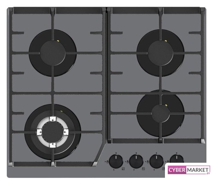 газовая на 4 конфорки, закаленное стекло, мощность: 8060 Вт, автоматический электроподжиг, газ-контроль, решетки: чугун, независимая установка, размеры (ШхГ): 58.4x51 см
