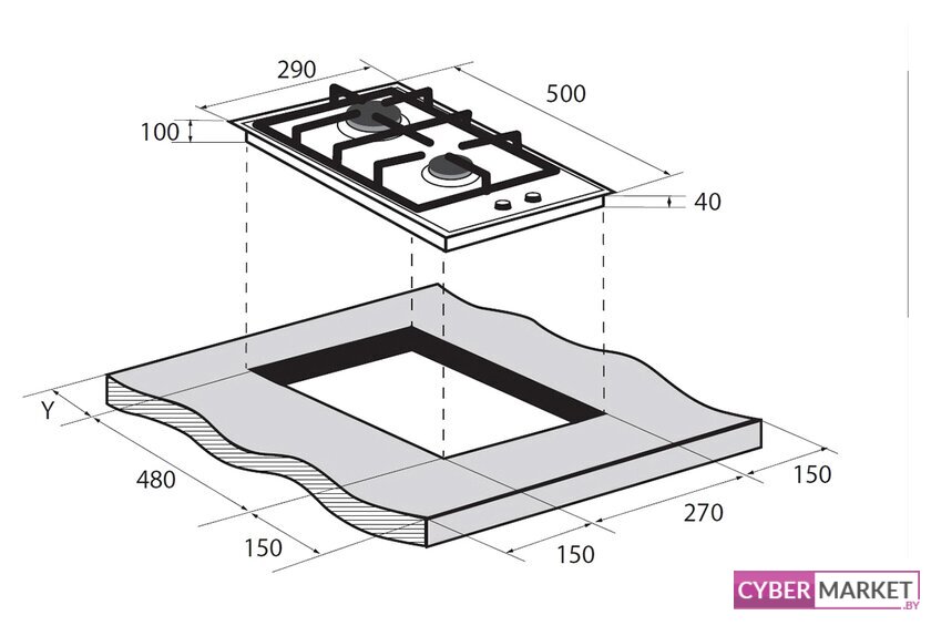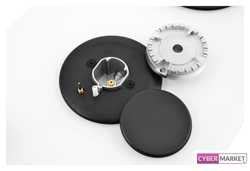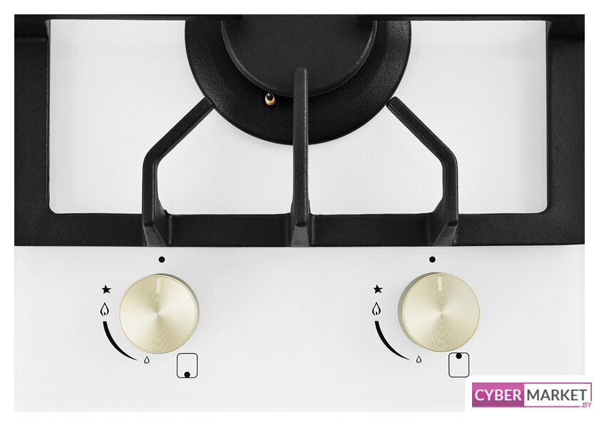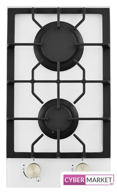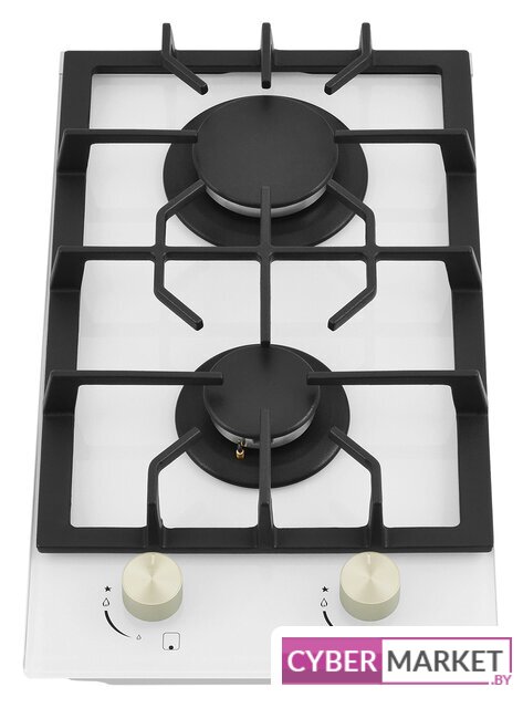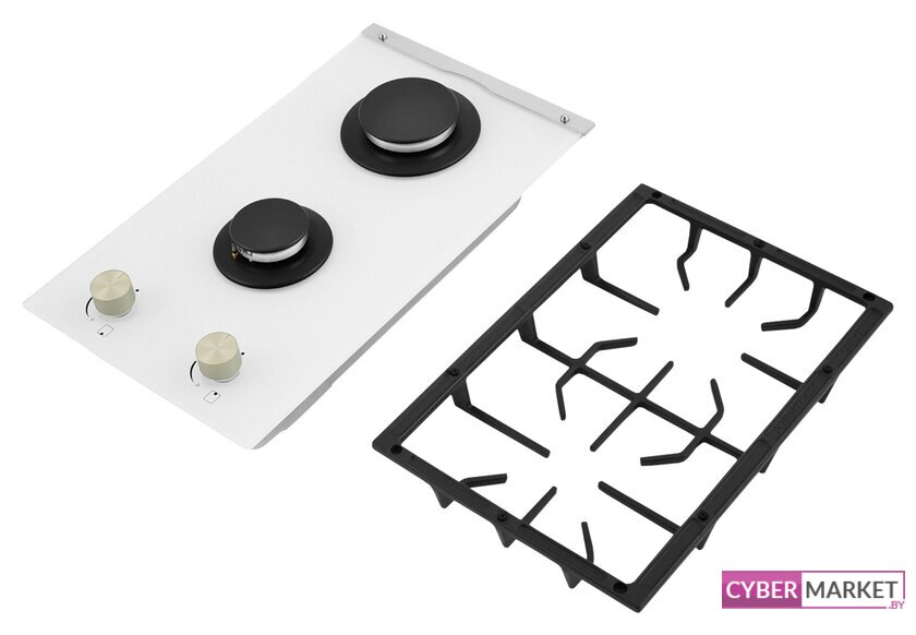 газовая на 2 конфорки, закаленное стекло, мощность: 4300 Вт, автоматический электроподжиг, газ-контроль, решетки: чугун, независимая установка