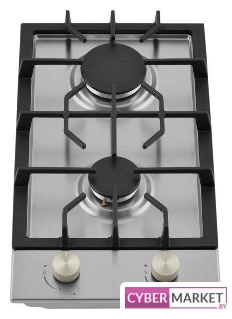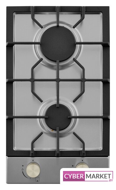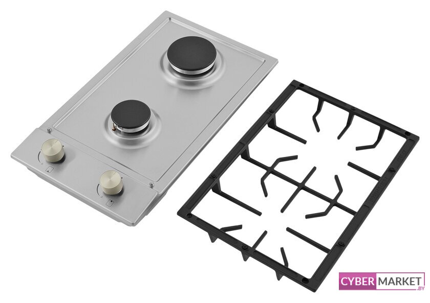 газовая на 2 конфорки, нержавеющая сталь, мощность: 5200 Вт, автоматический электроподжиг, газ-контроль, решетки: чугун, независимая установка, размеры (ШхГ): 29.4x51 см