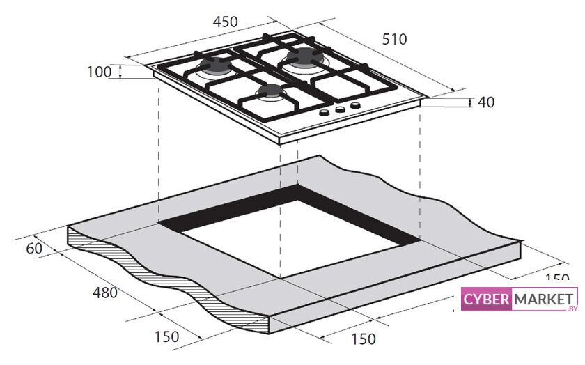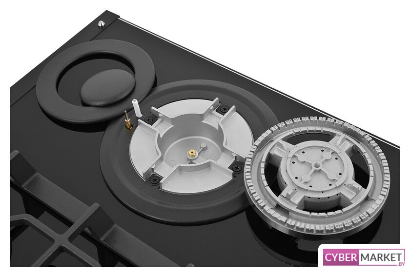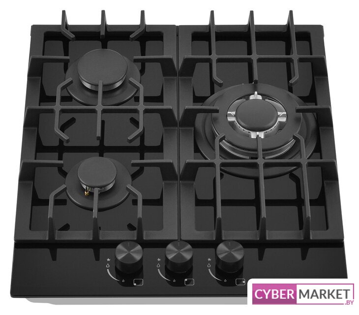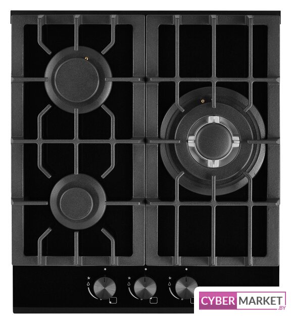 газовая на 3 конфорки, закаленное стекло, мощность: 6400 Вт, автоматический электроподжиг, газ-контроль, решетки: чугун, независимая установка, размеры (ШхГ): 54x54 см
