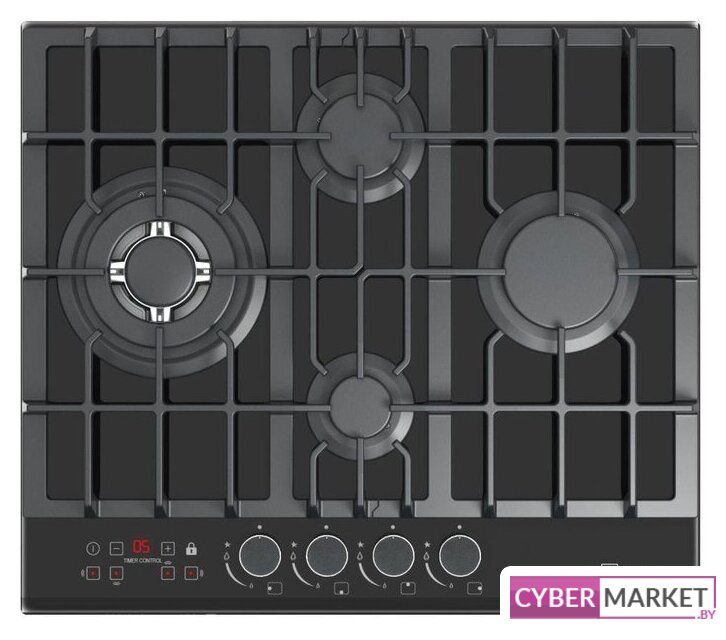 газовая на 4 конфорки, закаленное стекло, мощность: 8600 Вт, автоматический электроподжиг, газ-контроль, решетки: чугун, независимая установка, размеры (ШхГ): 58x51 см