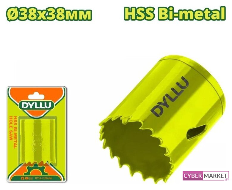 биметаллическая коронка, алюминий/дерево/металл/пластик, рабочий диаметр 22 мм, рабочая длина 38 мм