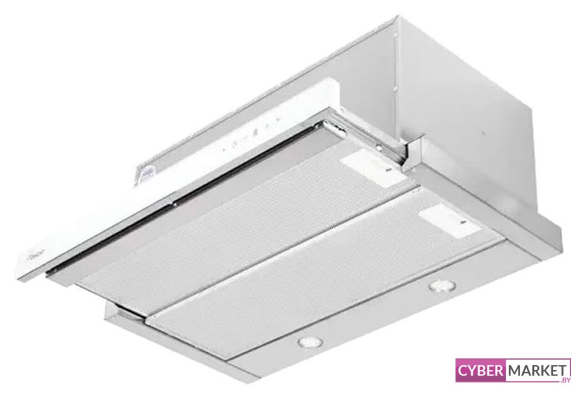 конструкция скрытая, монтаж для встраивания, ширина 53 см, управление сенсорное, производительность мотора 1250 м³/ч, цвет нержавеющая сталь