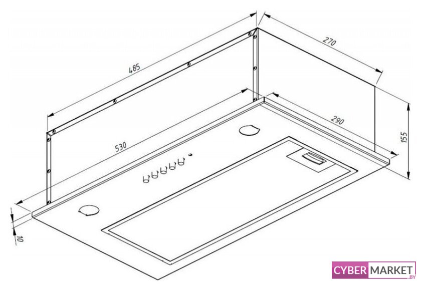 конструкция скрытая, монтаж для встраивания, ширина 53 см, управление механическое/кнопочное, производительность мотора 520 м³/ч, цвет белый