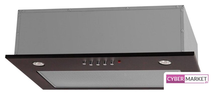 конструкция купольная, монтаж настенный, ширина 59.5 см, управление механическое/кнопочное, производительность мотора 620 м³/ч, цвет черный