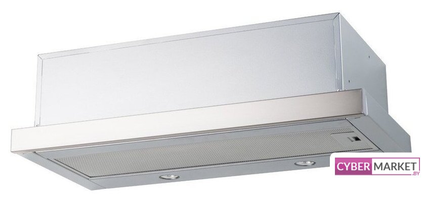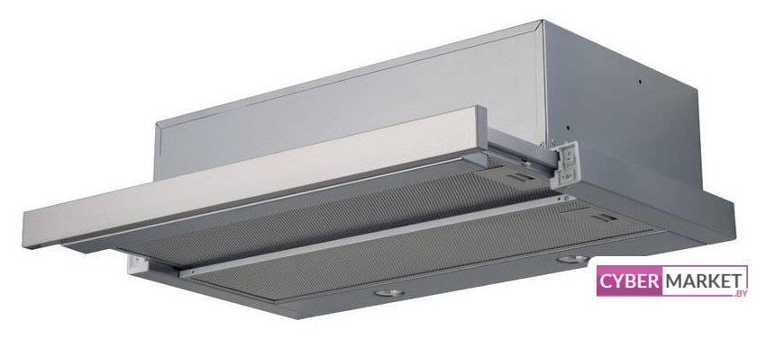 конструкция телескопическая, монтаж для встраивания, ширина 50 см, управление механическое/кнопочное, производительность мотора 750 м³/ч, цвет нержавеющая сталь