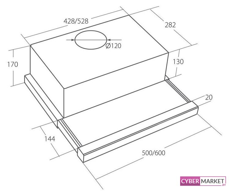 конструкция телескопическая, монтаж для встраивания, ширина 60 см, управление механическое/кнопочное, производительность мотора 507 м³/ч, цвет белый