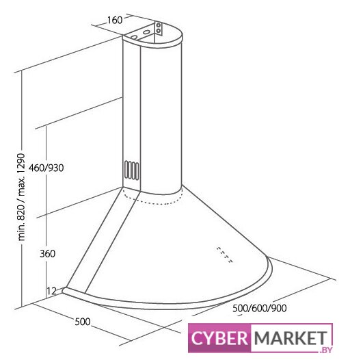 конструкция коробчатая, монтаж для встраивания, управление механическое, производительность мотора 450 м³/ч, ширина 52 см