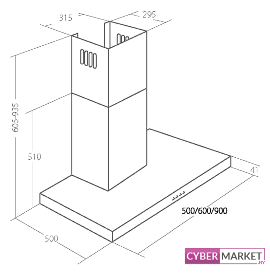 конструкция коробчатая, монтаж настенный, ширина 40 см, управление электронное/кнопочное, производительность мотора 1200 м³/ч, цвет черный