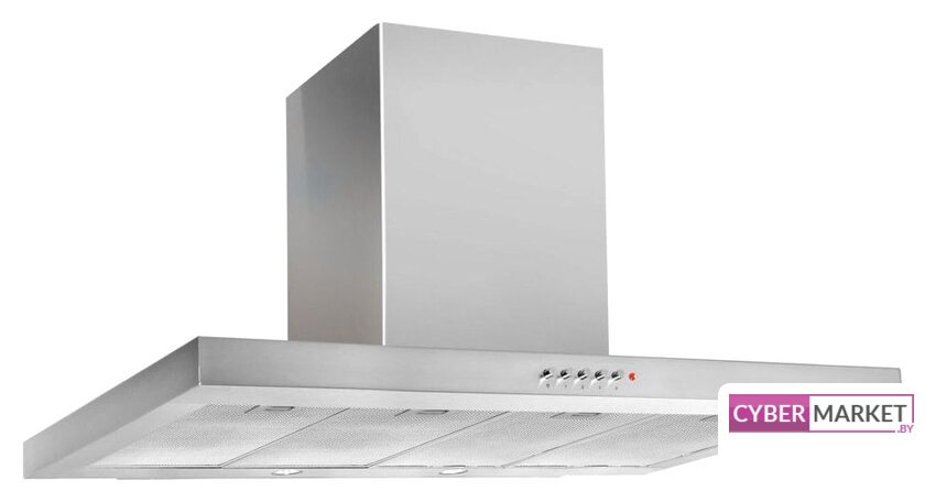 конструкция Т-образная, монтаж настенный, ширина 90 см, управление механическое/кнопочное, производительность мотора 650 м³/ч, цвет нержавеющая сталь/черный
