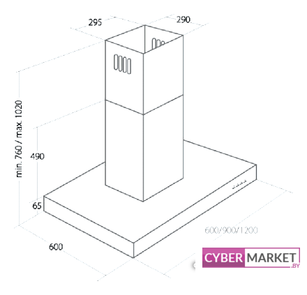 конструкция Т-образная, монтаж настенный, ширина 90 см, управление сенсорное, производительность мотора 1050 м³/ч, цвет нержавеющая сталь/черный