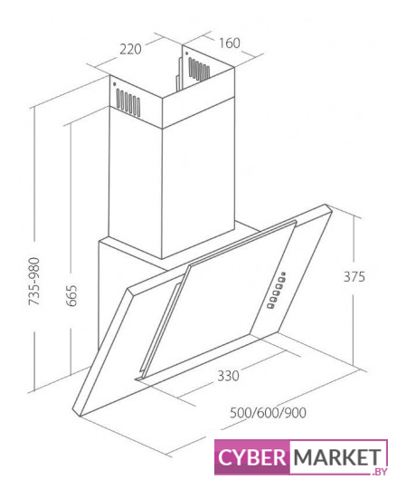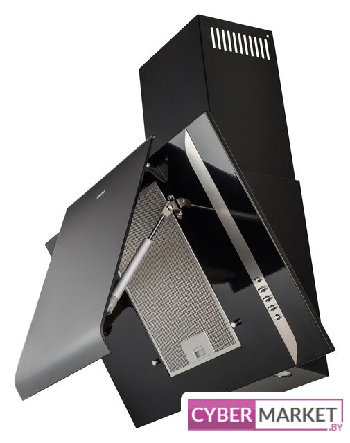 конструкция наклонная, монтаж настенный, ширина 60 см, управление механическое/кнопочное, производительность мотора 850 м³/ч, цвет черный