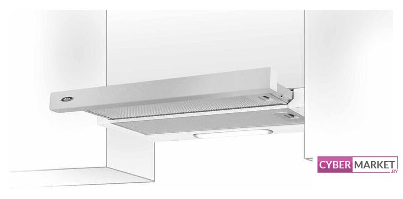 конструкция скрытая, монтаж для встраивания, ширина 43 см, управление механическое/кнопочное, производительность мотора 870 м³/ч, цвет белый