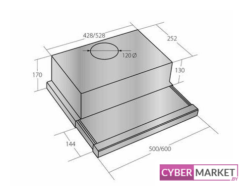 конструкция скрытая, монтаж для встраивания, ширина 43 см, управление механическое/кнопочное, производительность мотора 870 м³/ч, цвет серый