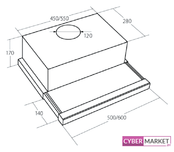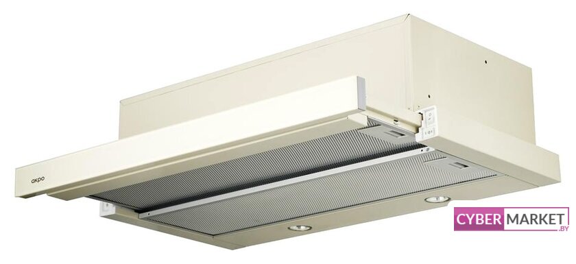 конструкция телескопическая, монтаж для встраивания, ширина 60 см, управление механическое/кнопочное, производительность мотора 520 м³/ч, цвет белый