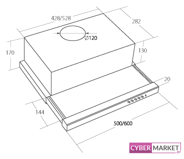 конструкция телескопическая, монтаж для встраивания, управление механическое/кнопочное, производительность мотора 400 м³/ч, ширина 60 см