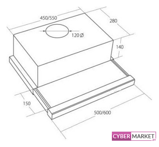 конструкция скрытая, монтаж для встраивания, ширина 52 см, управление электронное/кнопочное, производительность вытяжки 1000 м³/ч, производительность мотора 1300 м³/ч, цвет нержавеющая сталь