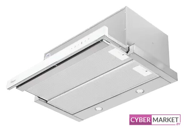 конструкция скрытая, монтаж для встраивания, ширина 52 см, управление сенсорное, производительность мотора 800 м³/ч, цвет белый