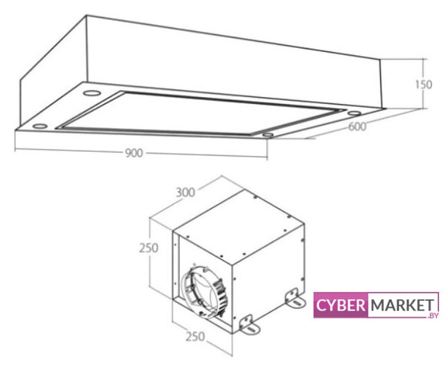 конструкция наклонная, монтаж настенный, ширина 600 см, управление сенсорное/дистанционное, производительность мотора 1250 м³/ч, цвет черный