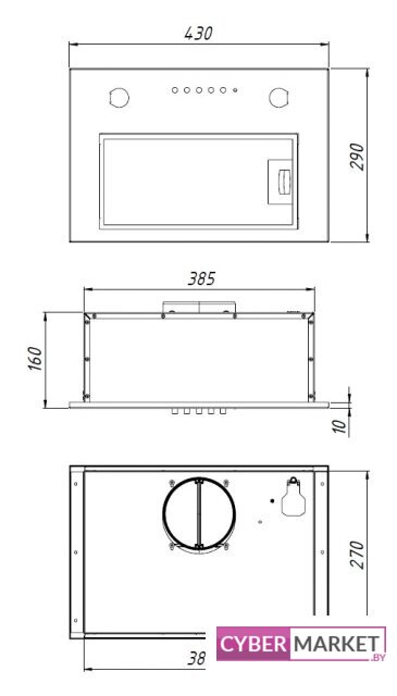 конструкция скрытая, монтаж для встраивания, ширина 43 см, управление механическое/кнопочное, производительность мотора 870 м³/ч, цвет черный